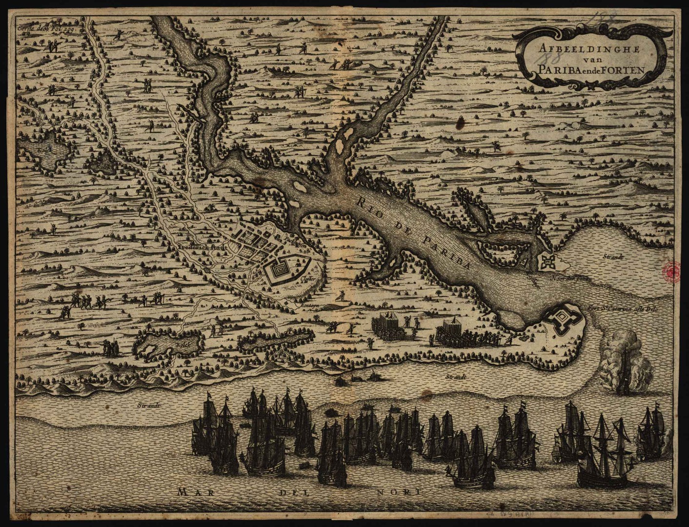 Na época de Servaes, João Pessoa tinha o nome de Frederika, como no mapa | Imagem: Biblioteca Nacional de Portugal/Reprodução