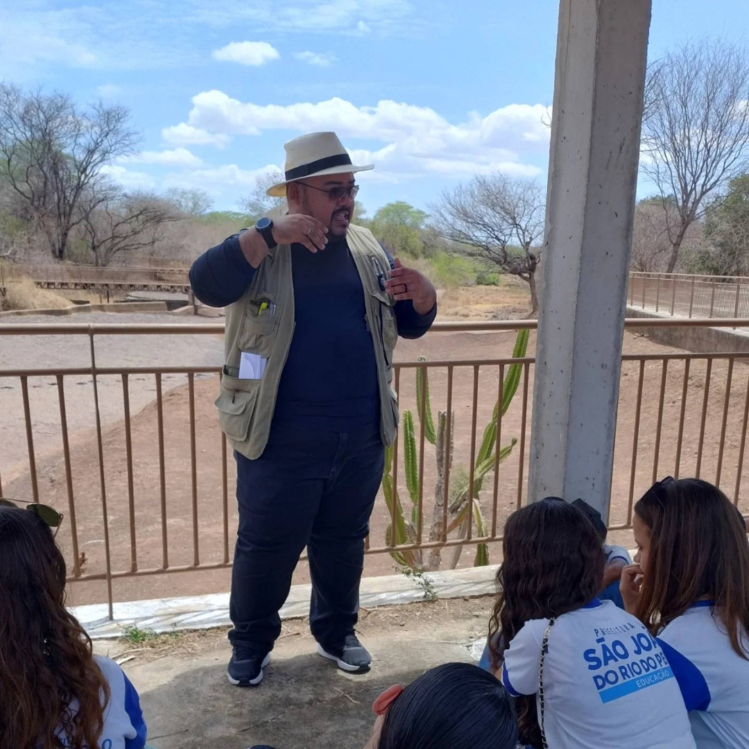Thomas Bruno falando a estudantes de um dos inúmeros locais visitados por ele no estado | Foto: Reprodução/Instagram @thomas.bruno
