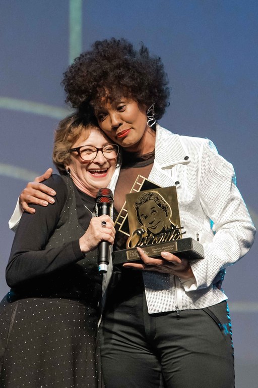 A atriz paraibana recebe o prêmio das mãos de Isabel Fillardis | Foto: Cleiton Thiele/Divulgação