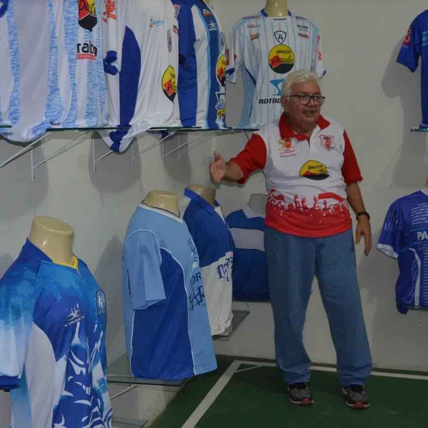 Reudesman Lopes é o curador do museu, que abriga desde uniformes de times e da Seleção a troféus e fotografias raras | Fotos: Reprodução/Instagram @museudofutebolcajazeiras
