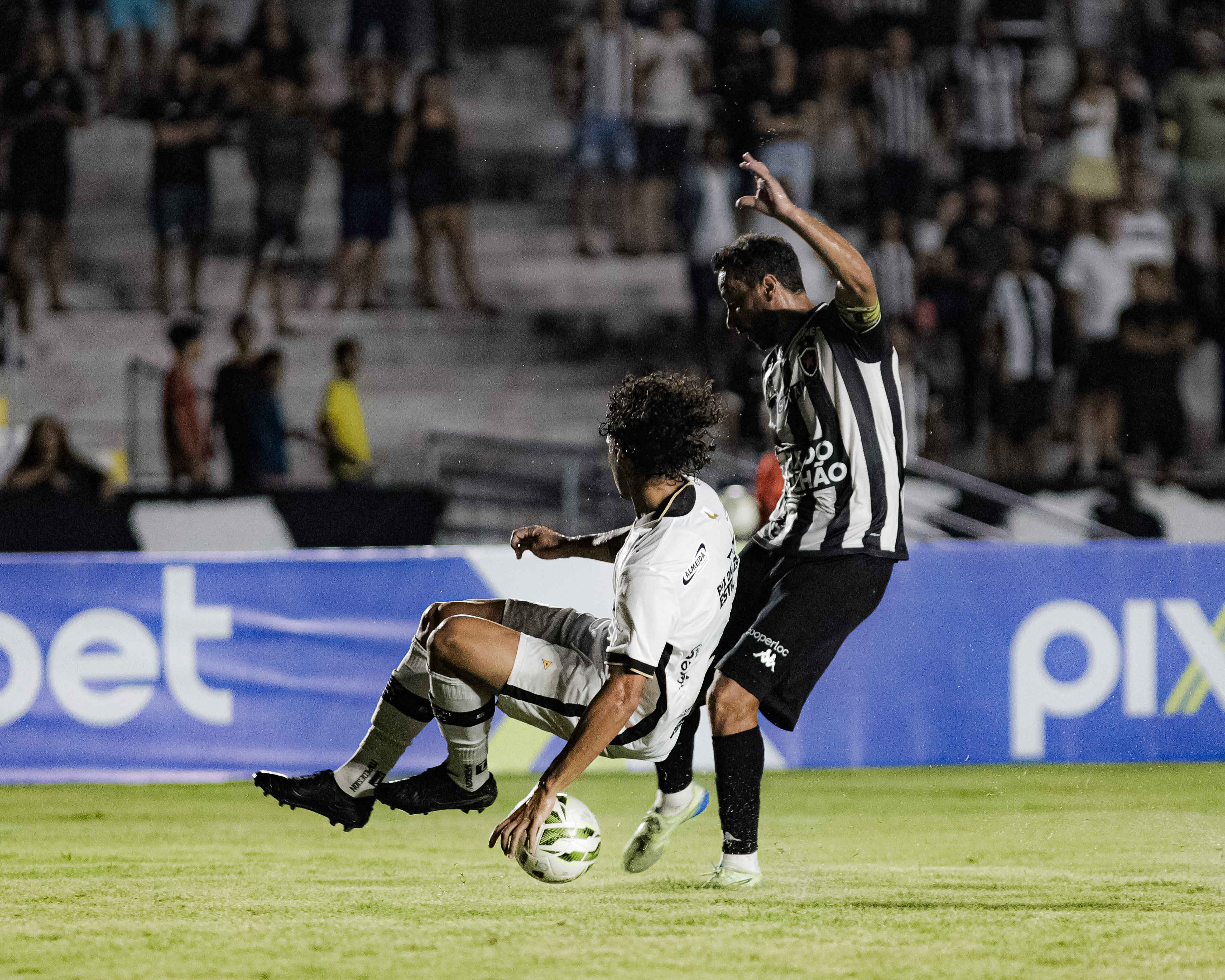 - Nenê, um dos destaques do Botafogo, em disputa de bola no clássico contra o Treze | Foto: João Neto/Botafogo