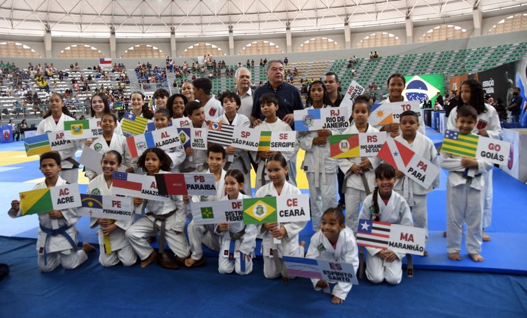 Atletas representando as delegações que participam do Campeonato Brasileiro de Judô durante a cerimônia de abertura