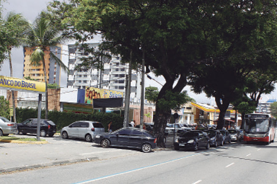 Diariamente, clientes do banco formam fila de carros para entrar na agência fazendo com que os ônibus tenham que utilizar outra faixa