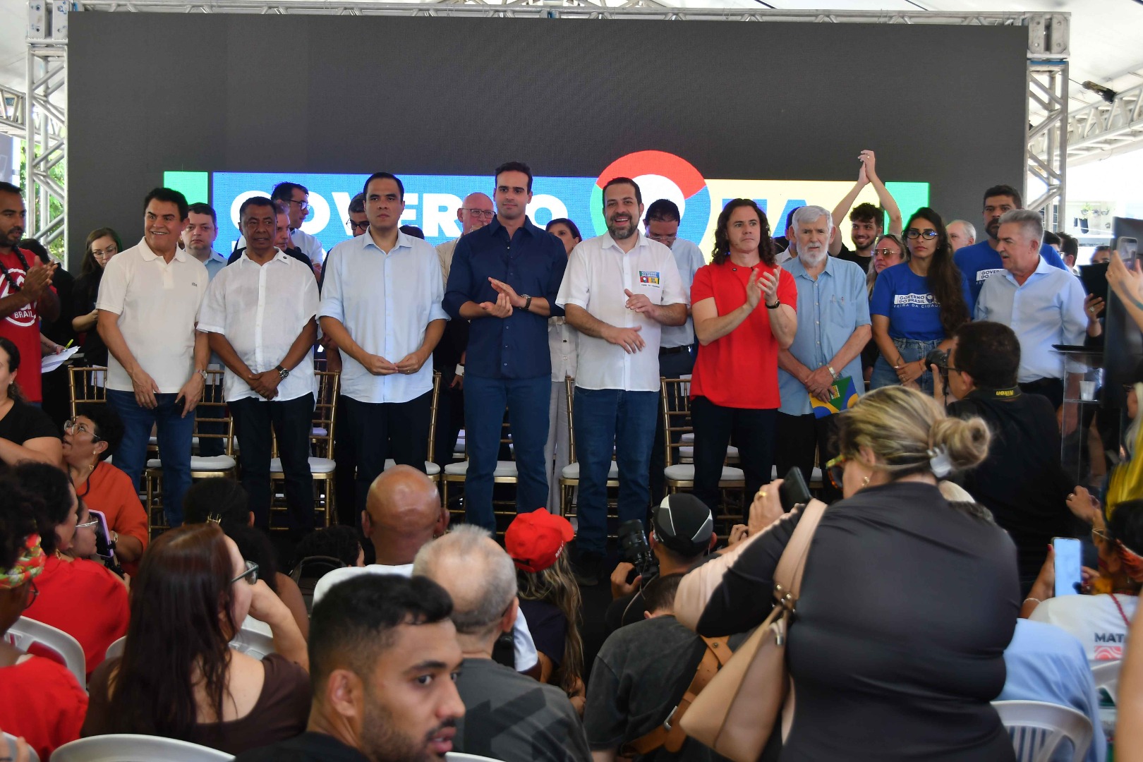 Governador Lucas Ribeiro acompanhou agenda dos ministros Guilherme Boulos e Gustavo Feliciano; evento em Mangabeira também reuniu parlamentares | Foto: Leonardo Ariel