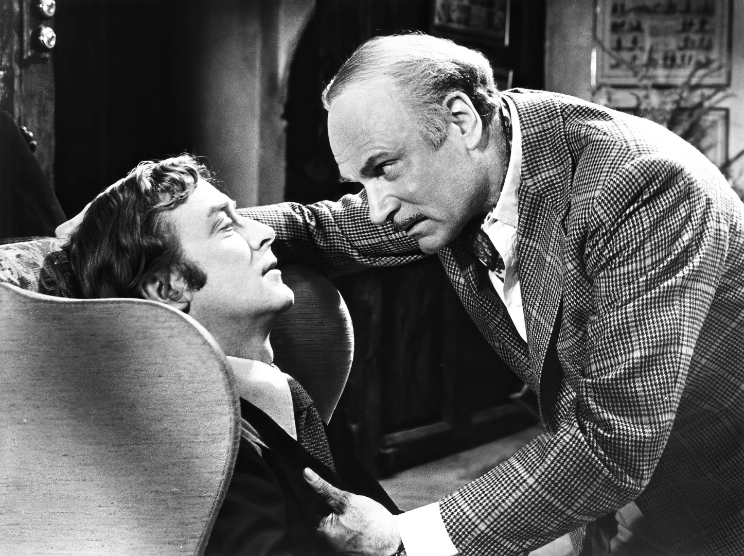 Michael Caine e Laurence Olivier, no duelo de gato e rato do filme Jogo Mortal | Foto: Divulgação