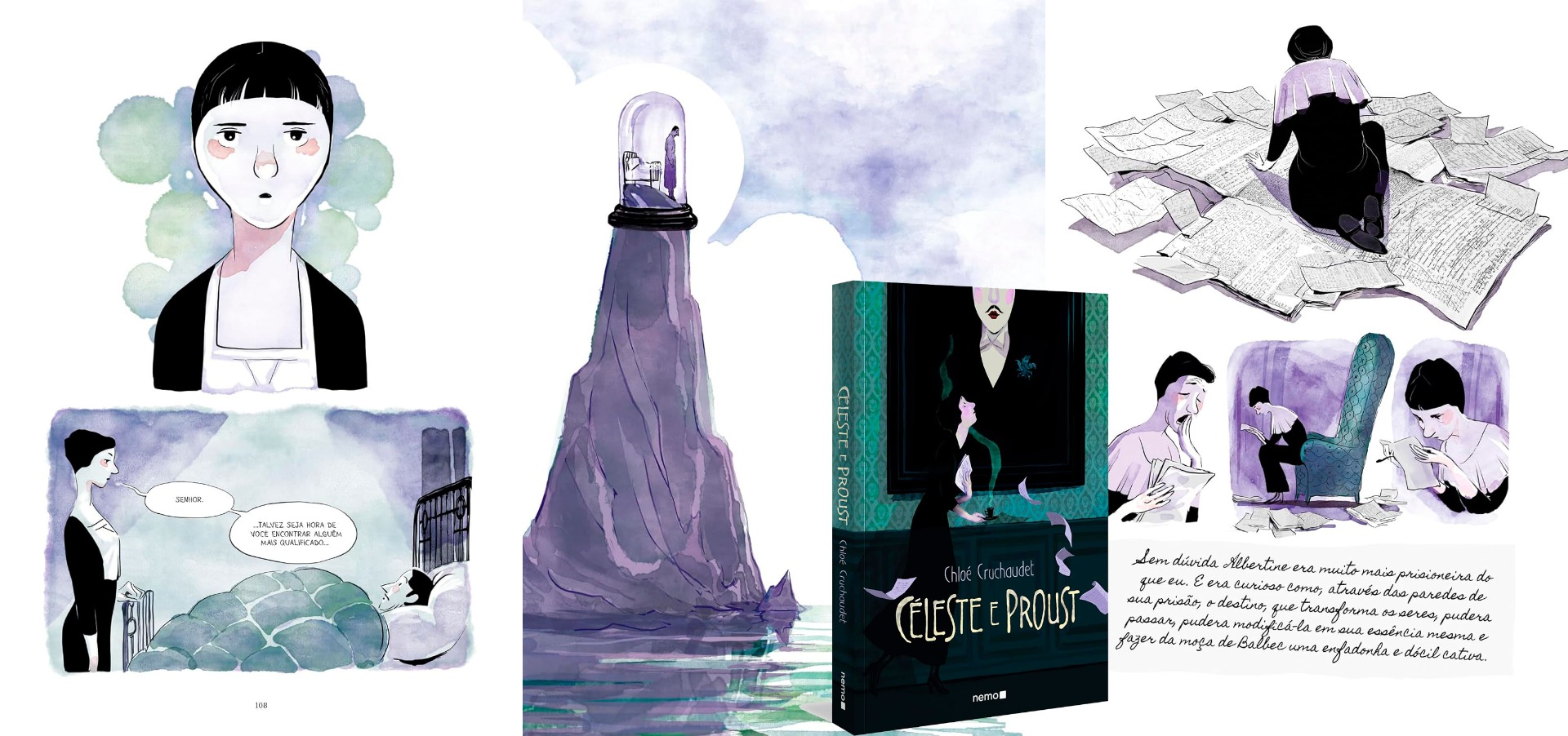 Obra traz um recorte “subjetivo” da importância da governanta e secretária nos últimos anos da vida do escritor Marcel Proust | Imagens: Reprodução/Editora Nemo