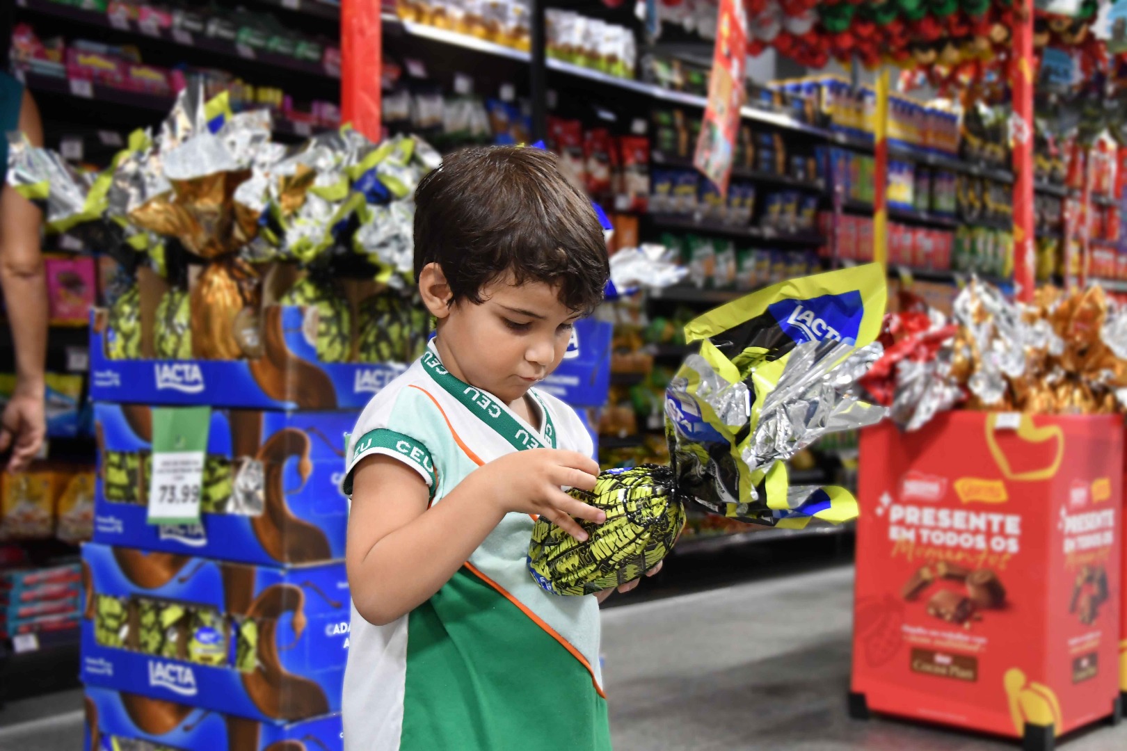 Mercado investe em diferentes opções de ovos de chocolate para atrair as crianças | Foto: Roberto Guedes